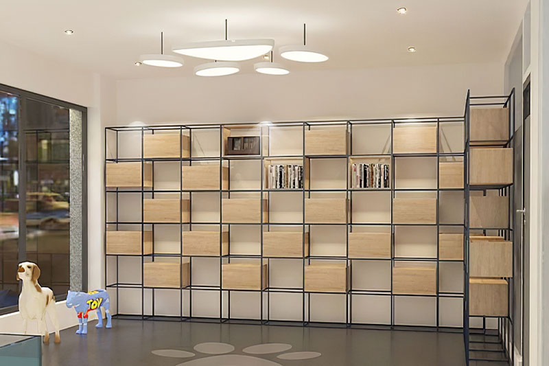 4.装饰细节:在宠物店的装修设计中,细节相当重要。例如,需要在宠物床和宠物食品区域放置一些可爱的小装饰品,如宠物玩具、宠物雕塑等。这些小装饰品可以增加店铺的生气和活力。